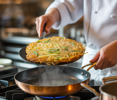 비 오는 날, 감자채전 한 장 구우며 기억과 맛을 함께 나눠보세요.
