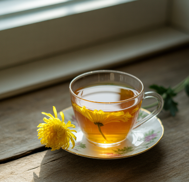 국화차는 체내 열을 내려주는 성질이 있어 감기 초기에 마시면 발열과 두통 완화에 도움을 줍니다. 또한 독소 배출을 촉진해 몸의 균형을 회복하는 데 좋습니다.