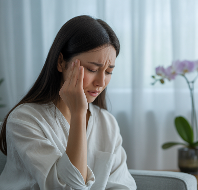 턱관절 질환이 있으면 저작근(씹는 근육)에 긴장이 생겨 머리와 얼굴에까지 저림이 나타날 수 있습니다.