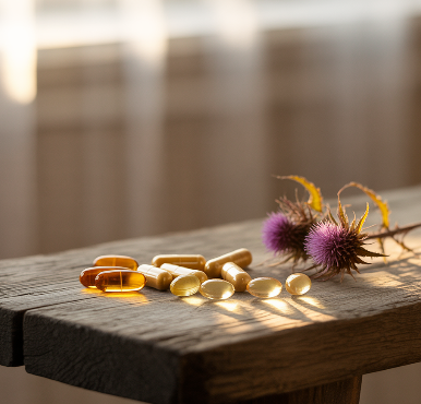 밀크씨슬의 핵심 성분인 실리마린은 간세포막을 강화해 독성 물질이 세포 안으로 들어오는 것을 막고, 이미 손상된 세포의 회복을 촉진합니다. 술을 자주 마시는 사람이나 간 수치가 높은 사람에게 긍정적인 효과가 보고되었습니다.