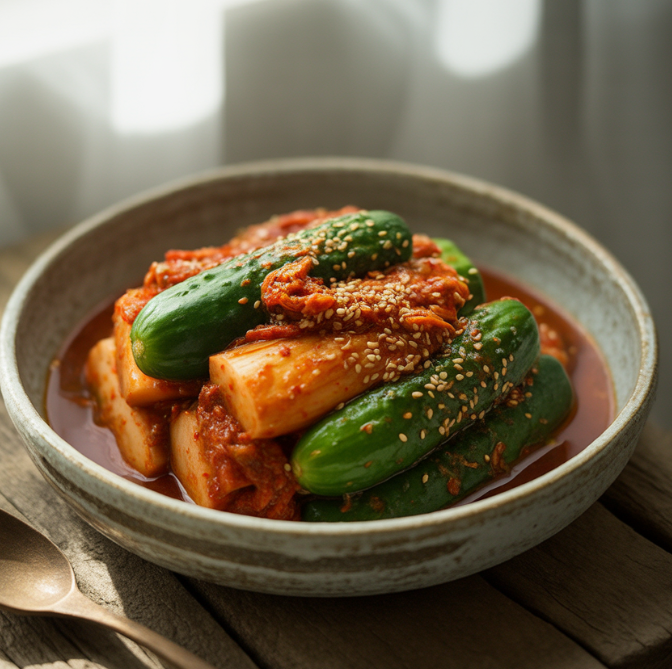 오이소박이는 겉으로 보면 단순한 김치 같지만, 오이를 절이고 속을 채워 숙성시키는 과정 덕분에 일반 김치와는 다른 독특한 풍미를 갖습니다.