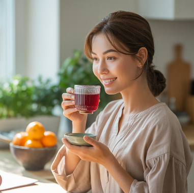 히비스커스차는 지방 세포의 축적을 억제하고, 이뇨 작용을 통해 불필요한 수분과 노폐물을 배출합니다. 또한 새콤한 맛 덕분에 식욕 억제 효과도 있어 다이어트 보조 음료로 주목받고 있습니다. 커피나 당 음료 대신 히비스커스차를 마시면 칼로리 부담을 줄이면서도 포만감을 유지할 수 있습니다.
